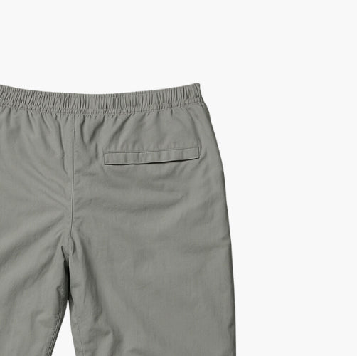Details: Technical cotton–polyester blend, elastic waistband, two front pockets and one back pocket, ankle zipper closure, comfortable and practical fit