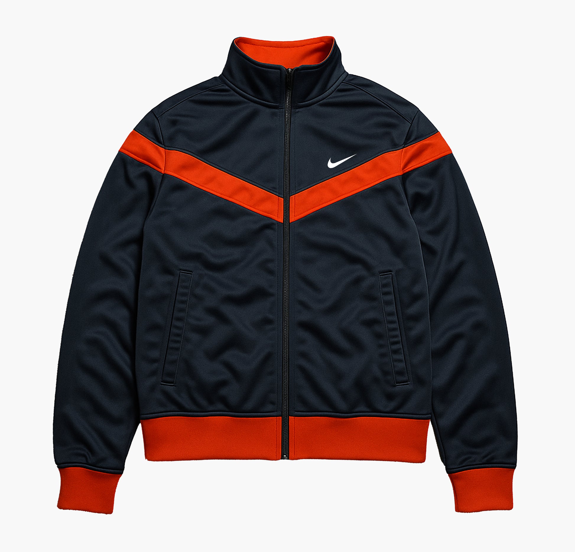 Details: Vintage Nike track jacket in grey with striking orange stripes and an embroidered logo, featuring a smooth zip-up front and a comfortable athletic fit. The piece is in very good condition, well maintained, and retains its authentic retro look — a clean and stylish option for everyday wear or vintage sportswear lovers.