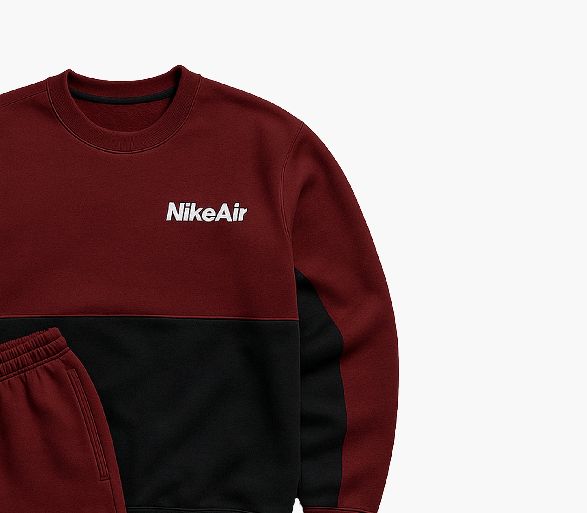 Details: Authentic Nike jogging set with embroidered logo. Two-piece ensemble in burgundy and black, soft and comfortable fabric, ideal for everyday wear or streetwear style. Very good condition with no visible flaws.