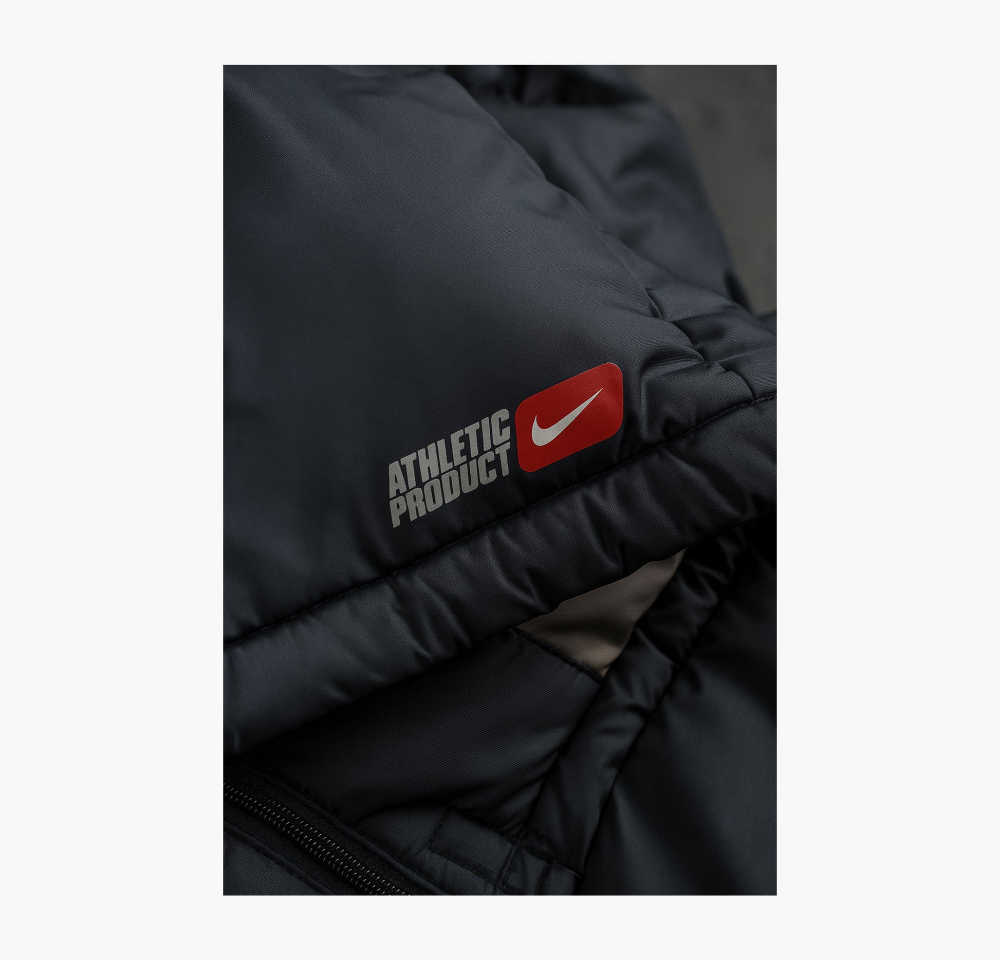 Details: Nike waterproof puffer jacket without hood, lightly worn and in very good condition. Features full zip closure, embroidered swoosh logo, and two side pockets. Small hole on photo 10, barely noticeable. Clean and ready to wear.