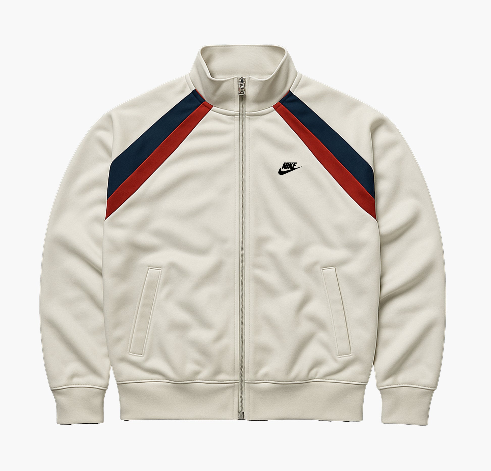 Details: Clean Nike zip jacket in a white and red colorway, featuring a smooth full-length zipper, two side pockets (non-zip), and a comfortable sporty fit. The jacket is in very good condition with no holes or stains, offering a fresh and versatile look suitable for everyday wear or training.