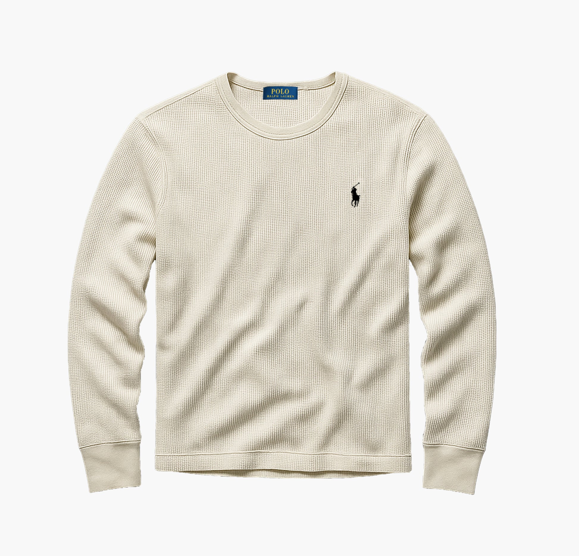 Details: Classic Ralph Lauren waffle-textured knit sweater, embroidered chest logo, long sleeves, soft cotton fabric, worn only a few times, excellent overall condition