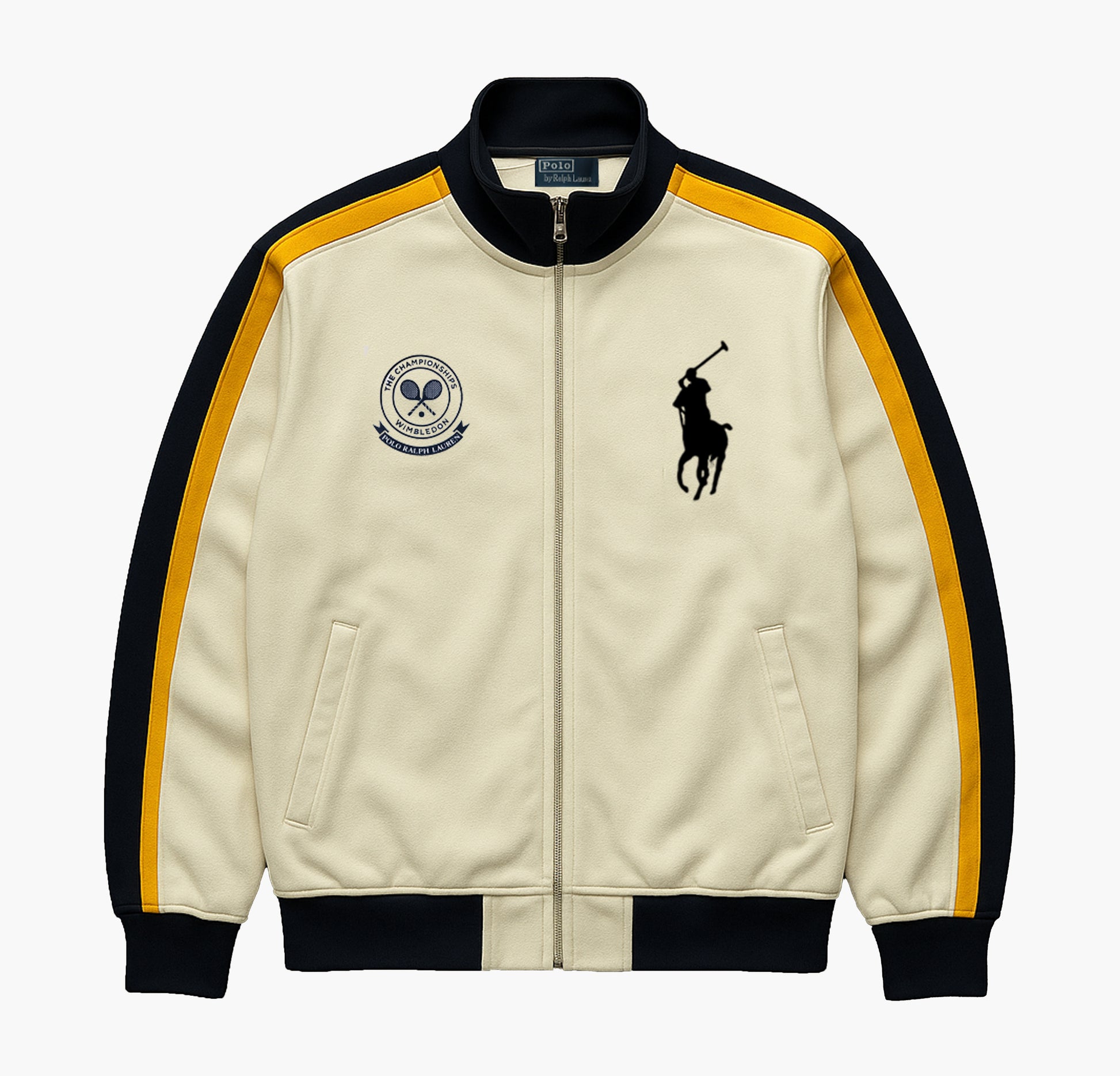 Details: Rare Ralph Lauren Wimbledon edition jacket, embroidered tournament logo, zip-up front, long sleeves, premium cotton blend, worn but in good overall condition